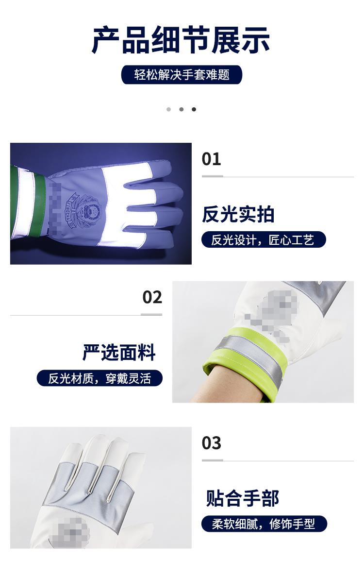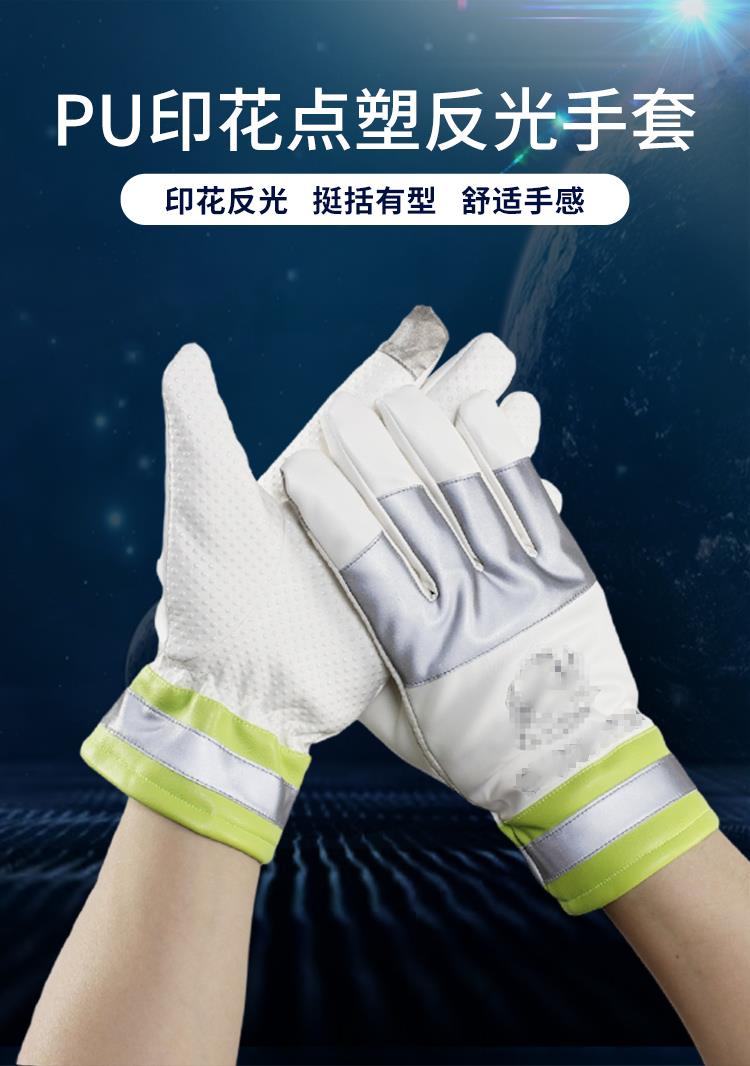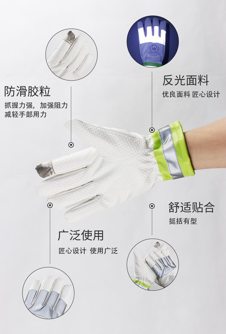 绿pu警徽白点塑防滑触屏反光手套